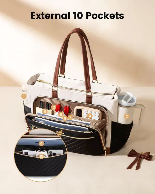 Women & Gifting: This quilted tote features extended PU leather handles for comfortable hand-carrying and a detachable bow for DIY styling. Premium hardware and smooth zippers ensure durability. Ideal as teacher gifts, equally perfect for nurses, college students, busy moms, and professionals, it offers organized compartments for laptops and essentials, perfect for work or leisure.