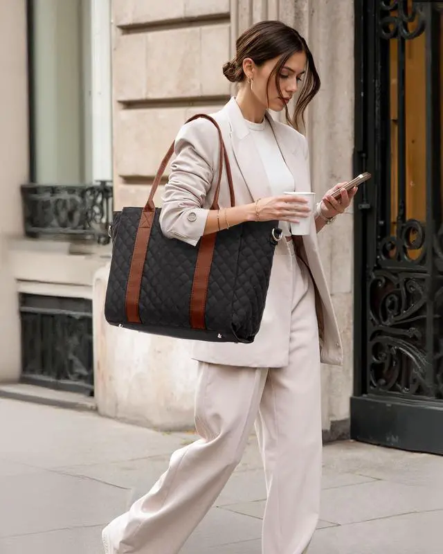 ^^ Versatile Laptop Tote Whether you're a teacher bag, nurse bag, or business professional bag, this work bags for women easily adapts to various life situations. Whether carried by hand, over the shoulder, or across the body, the flexible carrying style allows you to easily adapt to various situations, including work, school, and travel, ensuring you always have a unique personal style. ^^ Safe and Convenient DesignDesigned for convenient travel, this laptop bag features an integrated luggage cover that easily attaches to a luggage trolley, keeping your hands free.
