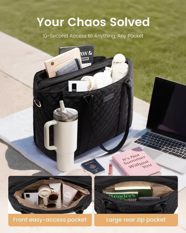 Large Capacity Multi-Compartment Work BagThis lovevook laptop bag for women can hold all your daily necessities. Teacher tote bag has three large compartments, 13 pockets, and a capacity of up to 25L, so your belongings are always kept organized. The built-in computer compartment can hold a 15.6 inch laptop, making it suitable for daily commuting, study, and travel. ^^ Stanley Bottle PocketThis pocket is designed specifically for your Stanley 40 oz water bottle, providing the perfect storage space. A built-in elastic pocket ensures you can drink easily and without worrying about spills during your busy day.