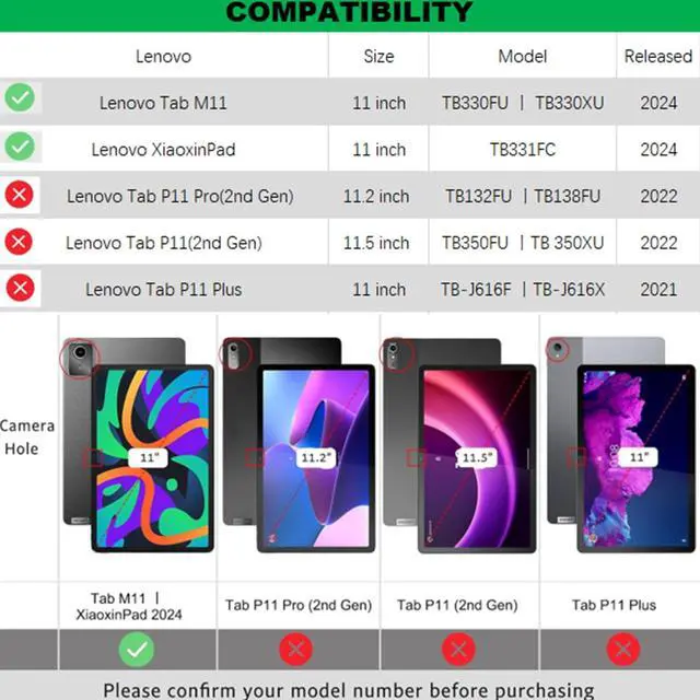 [Compatibility]: This Protective case is exclusively design for Lenovo 11" Tab M11/Tab K11 LTE 2024 (TB330FU) ONLY. Please confirm the model number "TB-XXXXX" by clicking: Settings - System- About tablet - model ^^ [Better 360
