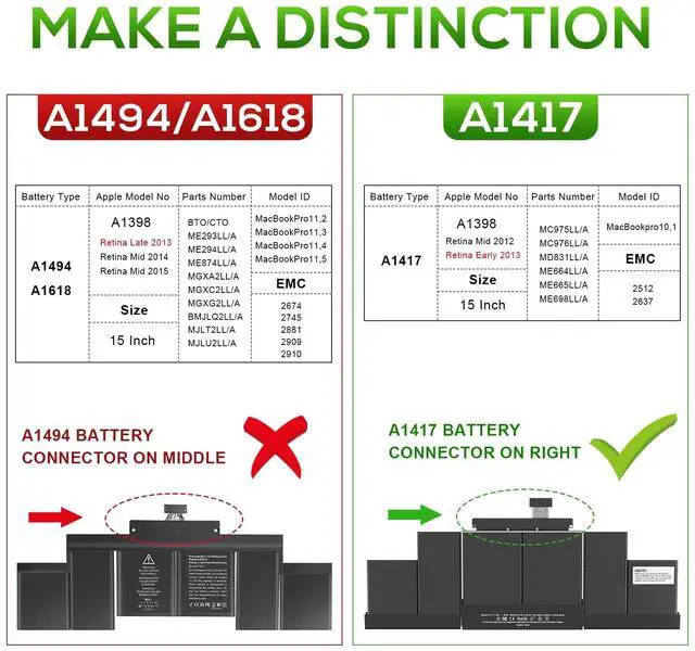 Compatible Laptop Models: Fit for MacBook Pro 15-inch Model A1398 (Mid 2012, Early 2013 Version Only), EMC: 2512,