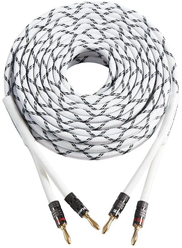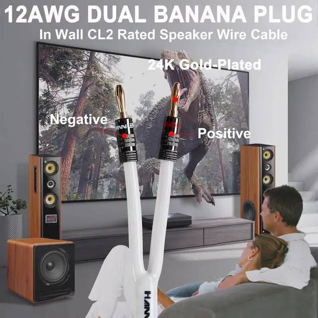 HannLinte Speaker Cable Wire- Maintain best audio and crisp clear sound with this dual conductor 12 AWG 99.99 % oxygen free copper (OFC), color coding banana plug to enable matching polarity. ^^ Gold-Plated Banana Plugs- Precision bolted interior banana plug terminations create a secure connection and a convenient alternative to cutting and terminating speaker wire with banana plugs. ^^ High-end Looking- High strand count wires in a no-slip PVC Y-Boot and a durable braided jacket, giving them extra protection to your speakers finish allowing pro-grade sound quality yet retaining the flexibility of ordinary speaker wire.