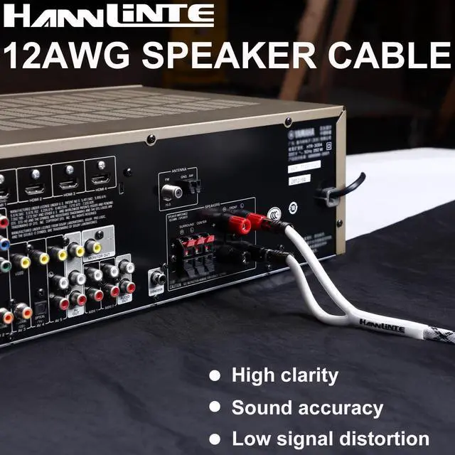 ^^ Easy to Install- Quick and easy installation for connecting a speaker to an A/V receiver or amplifier with banana plug style ports. ^^ Package includes- 1 Pack x HannLinte 12AWG premium heavy duty braided speaker wire cable.