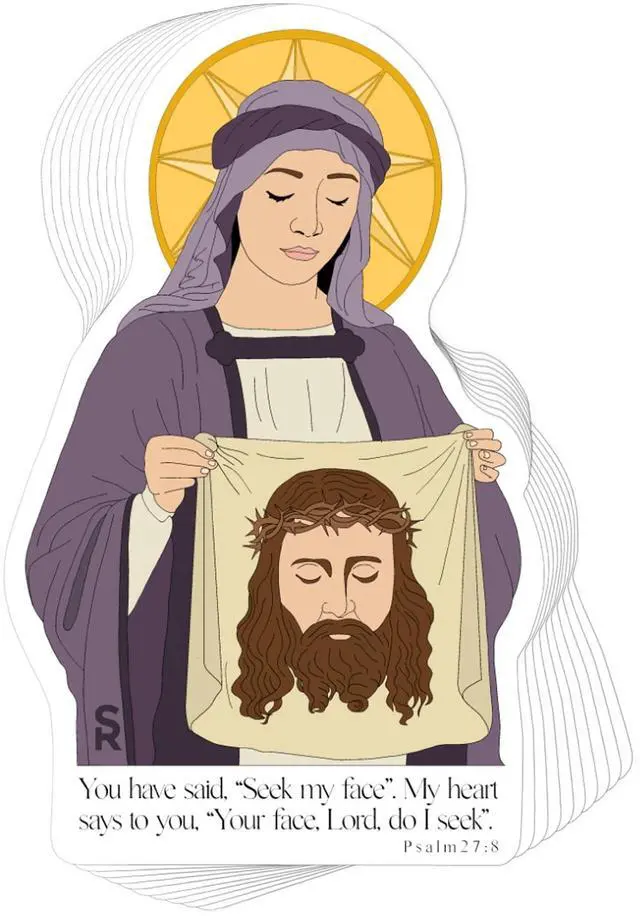 Catholic Concepts ^^ St. Veronica 4 x 2.25 Vinyl Sticker Label Decal Waterproof Cool Accessory for Laptop, Hard Hats, Water Bottles, Scrapbooks, Folders, Cell Phone ^^ 10-Pack