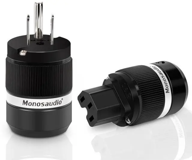 Its wear-resistant construction and anti-corrosion properties provide protection against environmental factors, extending its lifespan. ^^ Secure Connectivity The Audio Power Plug features a screw locking mechanism, providing a reliable and secure connection. With a rating of 15A/125V 10A/250V AC, it ensures a stable and uninterrupted power supply, preventing accidental disconnections. Enjoy high-quality audio performance with confidence. ^^ Versatile CompatibilityMonosaudio Audiophile Power connectors and plugs can accommodate cables of up to a maximum of 6-18mm, making them ideal for use in a wide range of audio components, such as pre-amplifiers, amplifiers, subwoofers, and speakers and so on.