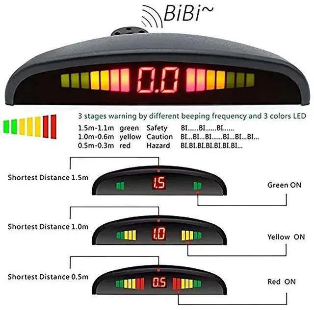 The reversing radar is composed of ultrasonic sensors, host, display, Compatible with Audio system, etc. When the car is reversing, the reversing radar will automatically start to work. ^^ There are 8 sensor systems, dual CPU and advanced chipset, which can enhance the coverage and inspection range. ^^ Ultrasonic sensors detect the distance between cars and help dangerous and costly collisions ^^ Equipped with miniature LED display buzzer alarm and main box, it is easy to find a suitable location in the vehicle for installation ^^ The closer the obstacle is, the louder and faster the alarm sound, and the color of the LED will increase.