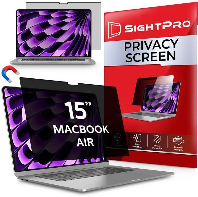 Instant Snap-on Magnetic Attachment- The Patented Magnetic Privacy Screen Protected by U. S. Patents 9, 829, 669 and D844, 012. Simply place the privacy screen along the top of your MacBook and let the magnets attach along the top. No need for tricky placement, messy tape, or damaging adhesive. Easily remove and reattach when you need it. ^^ Perfect Fit for 15.3" Liquid Retina Display- The SightPro Magnetic Privacy Screen is designed to integrate seamlessly with your MacBook Air 15 Inch Year 2023, 2024, 2025, M2, M3, M4