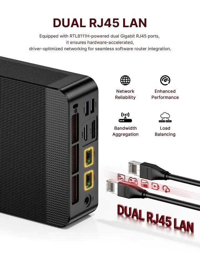^^ Dual LAN, Wi-Fi 6E (AX210) & Bluetooth 5.2 - Advanced ConnectivityThis mini PC equipped with the Realtek RTL8111H and dual 1000Mbps Nic Ethernet, Intel AX210 Wi-Fi 6E, and Bluetooth 5.2. Connects seamlessly with a wide range of devices, including projectors, NAS, monitors, keyboards, mice, tablets, and office equipment. Perfect for industrial and commercial use. ^^ 4K Triple Screen Display Mini PCTransform your workspace with our mini pc triple display capability. Equipped with HDMI 2.0 (4K@60Hz) + TYPE-C USB 3.2 Gen2(4K@60Hz) + DP (4K@60Hz) with display output, this mini gaming pc supports Triple Display.