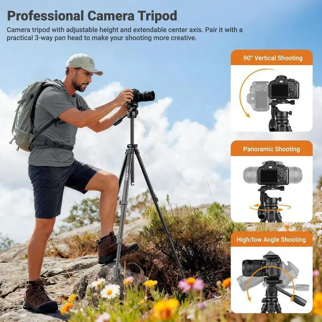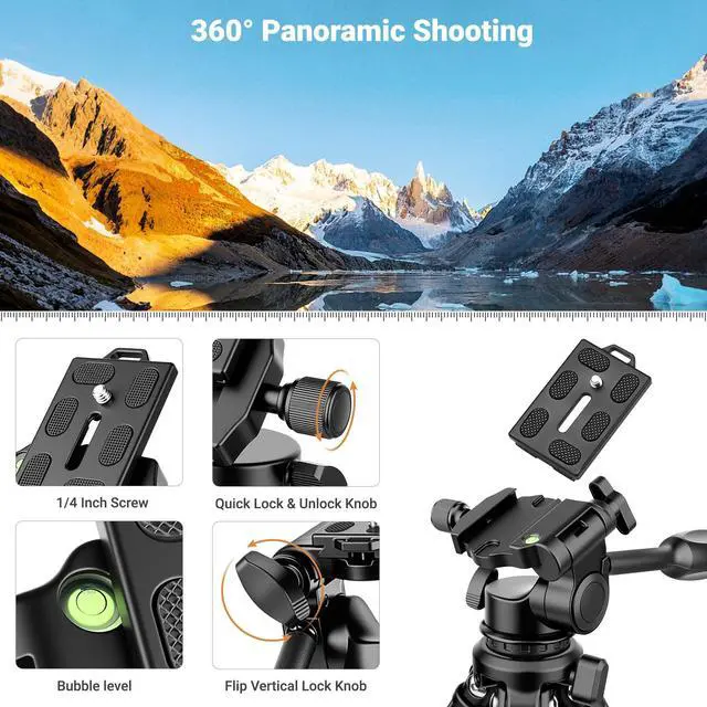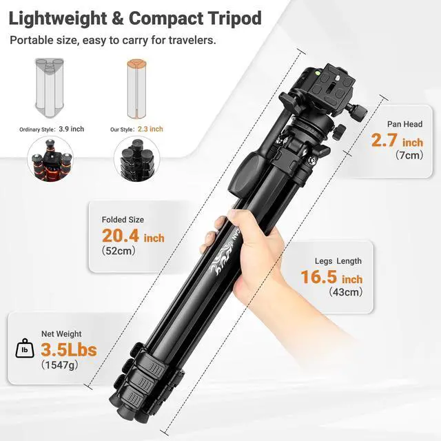 Product Description: JOILCAN FH60 Lightweight & Compact Tripod SpecificationsFolded Size 20.4 inch/52 cmLegs Length 16.5 inch/43 cmPan