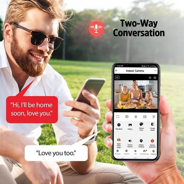 Instant notifications sent directly to your mobile device keep you informed in real-time, no matter where you are. The built-in two-way audio feature allows you to communicate seamlessly, making it easy to interact with family members or pets from anywhere. Additionally, the camera's night vision capabilities ensure that your home remains secure even in complete darkness, providing peace of mind around the clock. This camera is designed for flexibility, offering multiple storage options, including secure cloud storage with a free 30-day trial and support for microSD cards up to 128GB for local recording.