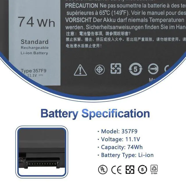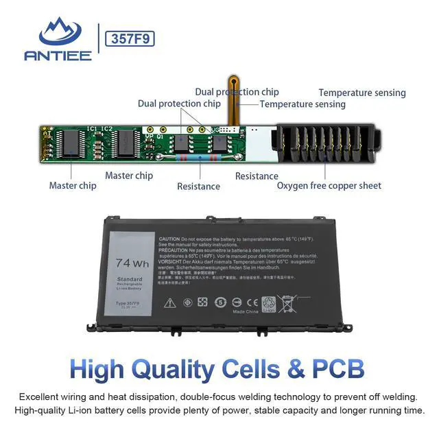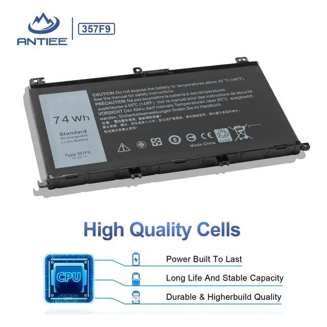 Condition: Brand new, from high quality materials, top circuit boards and grade battery cells ^^ Compatible Part Number357F9 0357F9 0GFJ6 00GFJ6 71JF4 071JF4 P57F P57F003 P65F P65F001 ^^ Compatible Laptop ModelsCompatible for Dell Inspiron 15 5000 7000 Series Gaming Laptop; for Dell Inspiron 15 5576 5577 7566 7567 7557 7559 i5577-7342blk-pus i7559-7512gry i7559-5012GRY i7559-3763blk i7559-763blk Notebook Battery; for Dell INS15PD-1548B INS15PD-1548R INS15PD-1748B INS15PD-1748R INS15PD-2548R INS15PD-2548B INS15PD-2748R INS15PD-3948B INS15PD-1848B INS15PD-2748B INS15PD-3848B ^^ ANTIEE PromiseEvery one of our replacement batteries has undergone rigorous testing to ensure the true charge capacity, circuit protection, stable current, low self-discharge. And our batteries are UL / CE / FCC / RoHS Certified for safety, it can provide up to 500 charging cycles over the life ^^ ANTIEE After-salesWe offer 12 months of warranty and 24 x 7 email support. If you have any questions while using your product, please contact us via the "Your Orders" section of your account. We guarantee a response within 24 hours.