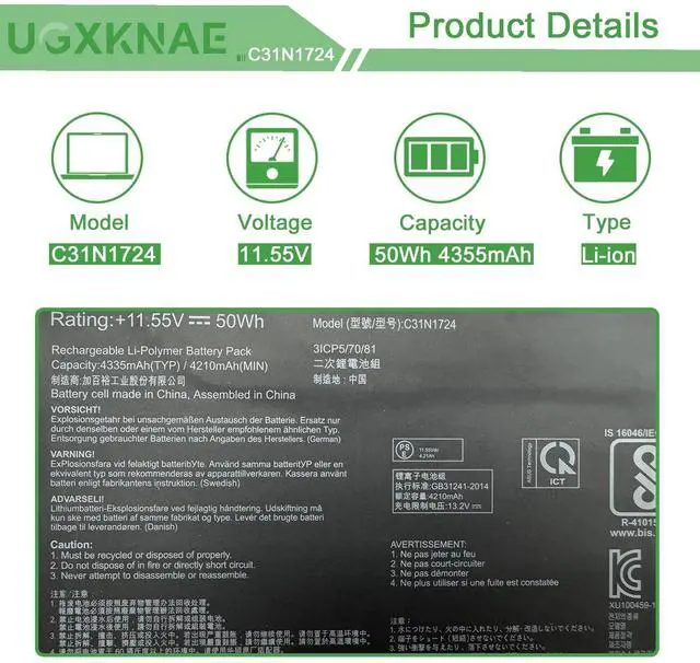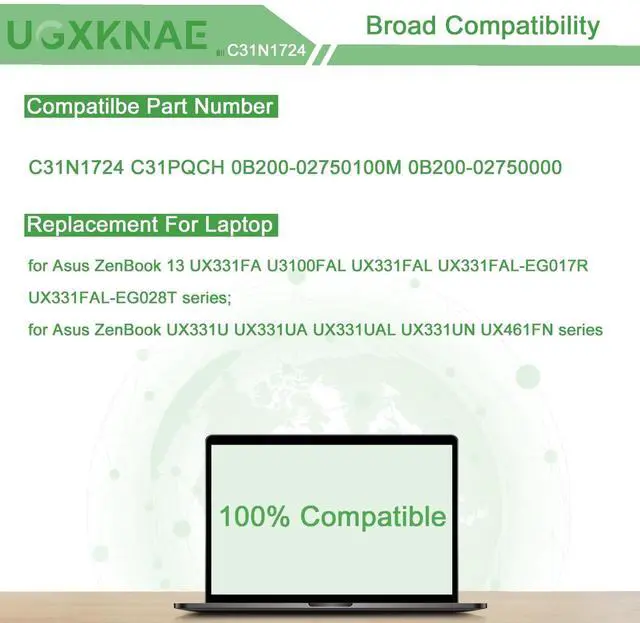 Compatible Laptop Models: Replacement for Asus ZenBook 13 UX331FA U3100FAL UX331FAL UX331FAL-EG017R UX331FAL-EG028T series; for Asus ZenBook UX331U UX331UA UX331UAL UX331UN UX461FN series ^^