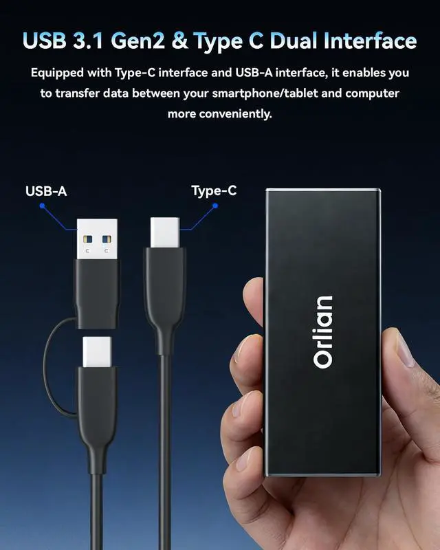 ^^ Wide compatibility: The external SSD can be easily connected to various Type-C devices such as Windows, Mac, iPad Pro, iPhone, and Android devices via USB-C and USB-A interfaces, enabling convenient and fast file transfer.