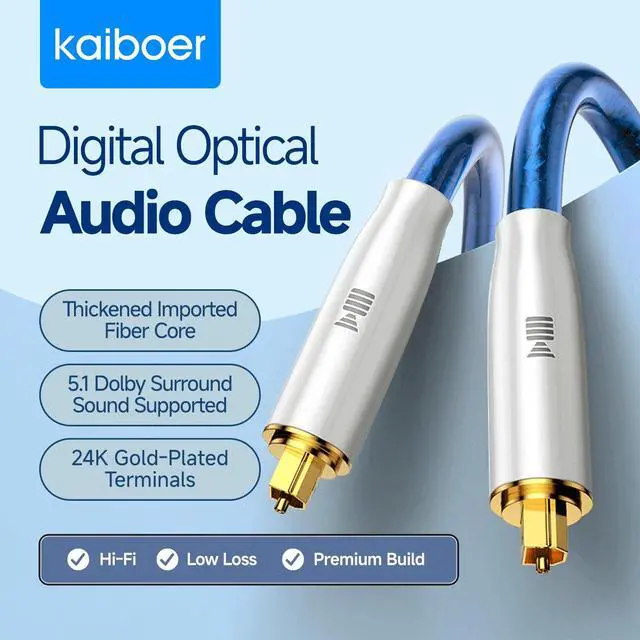 Digital Optical Audio Cable Fiber Optical Cable SPDIF Audio Male to Male Cord for Home Theater, Sound Bar, TV, Audio Systems, DVD Players ^^ High cycle life, corrosion-proof. Premium Silver Plated Digital Optical Audio Cable, Gold-plated copper terminals, withstanding repeated insertion and removal, corrosion-resistant. ^^ High-polish convex lens technology, High-Quality Copper-Baked Pearl White Shell. Jacket contributes to the strain-relief construction that not only providesflexibility, but also protects the cable from kinks. ^^ High-polish convex lens technology, Features high-quality PMMA fiber conductorSquare desian for enhanced versatility.