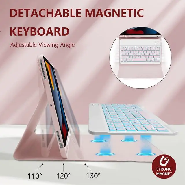 Number: A1701/A1709/A1852) It is Not compatible with any other models. Please check the model number starting with "A" on the back of your iPad before purchasing ^^ [LED Backlit Keyboard] 2 light modes (Monochromatic and gradient light), three-level adjustable brightness and 7 pure led backlit, engaging yourself in a free and relaxed typing experience in any dim condition. The backlight will automatically turn off if you are not typing for over 30 sec to save power ^^ [ Rechargeable and Long Life Battery ] Our case with keyboard built-in 420mAh large capacity battery, is more energy saving and lower consumption, ensure you can use at least 230 hours. Enters into sleep mode automatically if not in use for 15 minutes. It can be fully charged in 2 hours with Type-C charging cable, don't need to replace battery ^^ [ Magnetically Detachable Bluetooth Keyboard ] Our case with keyboard is magnetic so it can be easily repositioned or removed from the case. Equipped with useful shortcut keys and compatible with IOS, Windows, and Android systems, provide you with ultimate convenience ^^ [ Adjustable Viewing Angles As Needed ] Our case with keyboard supports multiple viewing angles adjustments.