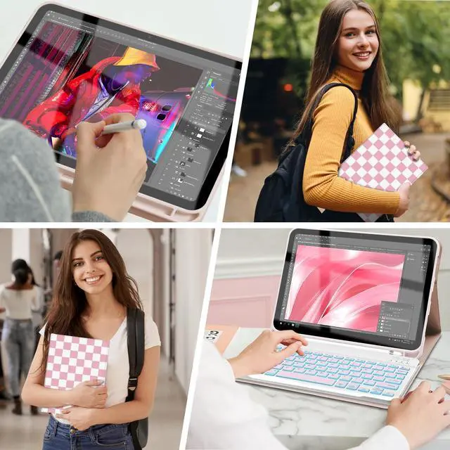 NOTE: Stylus is not included ^^ [ Premium Material ] Our case with keyboard is made of good quality PU material. Soft, durable and it gives a luxurious feeling. A lovely colorful plaid pattern to cheer up the mood! The interior case is made of premium flexible TPU, honeycomb grid pattern design is better for heat release. Precise cutout allows full access to all ports, sensors, speakers, microphone and camera ^^ [ Mewealth SUPPORT ] If you have any questions, please feel free to contact us via message, we will help you at any time. Your satisfaction is our priority. Package including 1 x case, 1 x LED wireless keyboard, 1 x Type-C charging cable, 1 x user manual. Please kindly note iPad and pencil are NOT included