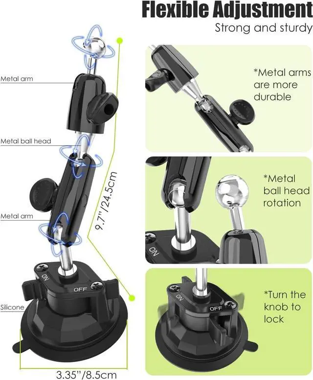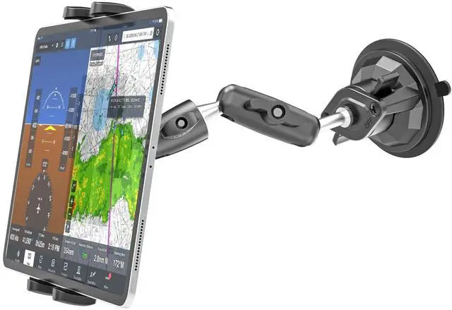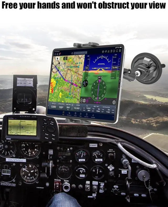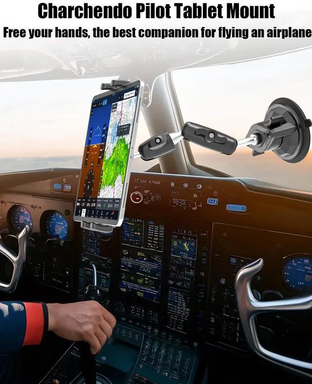 *Charchendo suction cup will not leave any residue or marks on the surface when removed! ^^ 3.35 -inch Reusable Suction CupThis pilot tablet holder features a powerful 3.35 -inch diameter vacuum suction cup, which securely holds the tablet in the cockpit even onvery bumpy flights. ^^ 7.5 -inch Metal Arm & 360 Rotating Metal Ball HeadThis aircraft cockpit tablet holder features a multi-jointed 360 rotating metal ball head and a rotatable metal arm, making it more durable and stable than plastic. It provides a perfect flight view without obstructing your vision, making it ideal for safe travel.