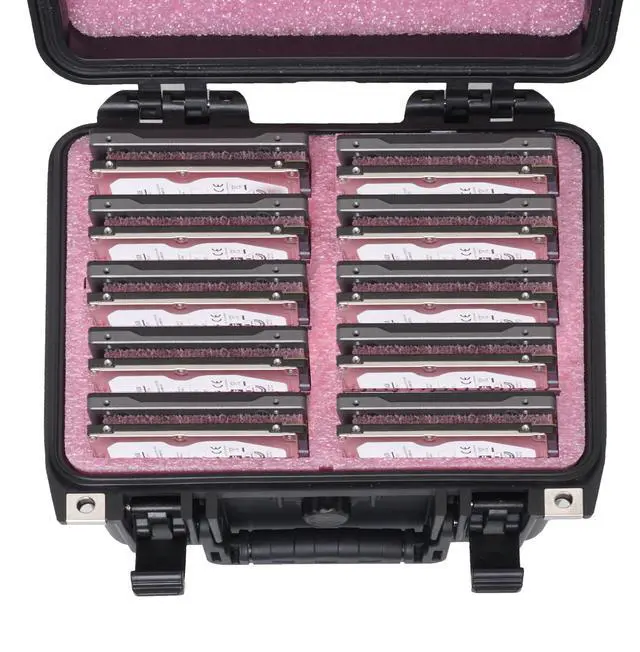 Case Clubs Medium HDD & SSD Internal Drive Storage Case holds a variety of internal storage drive types in a tough, waterproof, airtight case that is perfect for transportation & storage. The foam prevents static shock, is non abrasive, impact absorbing, and extremely long lasting. This case was engineered to far exceed all competition in versatility, longevity, toughness and be the next level in organization, storage, and transport needs. The case itself is guaranteed for life against breakage & defects so you know your items will be safe from harm.