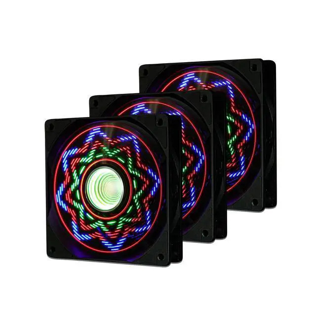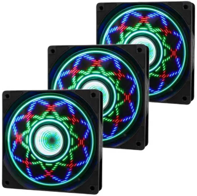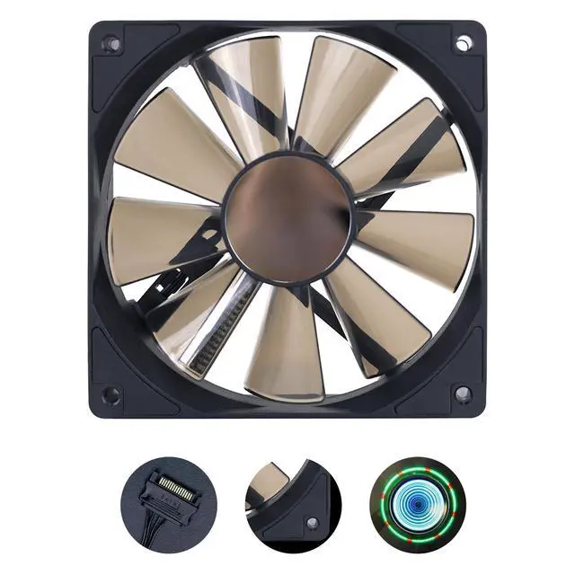 High Performance Cooling Fan The standard 120mm computer fan, equipped with eight anti-vibration pads, compatible with different types of chassis. with a maximum speed of 1650RPM. ^^ Novel DesignThe square fan frame is made of PBT material. The use of high-quality bearings has solved the problem of shaking of PC cooling fan blades in lifting mode, minimizing fan noise and providing maximum cooling performance when needed, extending the lifespan of the fan. ^^ Excellent LED light]Unique fan blade luminous design, non-contact power supply system for fan blades, frictionless and quieter, ABS material is more durable.
