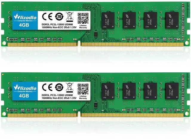 Memory: 8GB Kit Containing 2 x 4GB Modules, DDR3 / DDR3L, U-DIMM (Unbuffered DIMM), PC3-12800u / PC3L-12800u, 1600MHz, 240 Pins, 1.35 Volt / 1.5 Volt, 2Rx8 Dual Rank, Non-ECC, CL11.