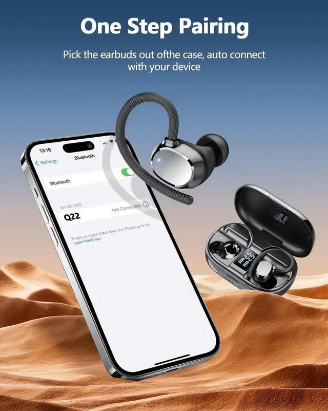 128 HOURS PLAYTIME AND LED DIGITAL DISPLAY: Q22 ear buds have an extra-long battery life of 8 hours of playtime and a 2600 mAh charging case for 120 hours of music playback; Wireless earbuds are equipped with a dual LED digital display that highlights the remaining power in the charging case and the charging status of the earbuds, allowing for efficient use of the ear buds and timely charging of the earphones; Bluetooth headphones utilize tycp-C fast charging technology, which provides 2 hours of music listening time in 10 mins of charging ^^ HIGH FIDUCIENT SOUND QUALITY AND ENC CLEAR CALLS: With 13 mm dual-layer graphene diaphragm drivers and equipped with hybrid ENC noise cancellation and Hi-Fi technology, Q22 earphones' unique bass enhancement algorithms feature powerful bass and pristine sound, for a breathtaking sound experience that is as immersive as it is acoustic; Equipped with a high-quality ENC noise-cancelling microphone that passively eliminates 90% of background noise, you can enjoy a first-class call experience wherever you are ^^ UPGRADED BLUETOOTH 5.3