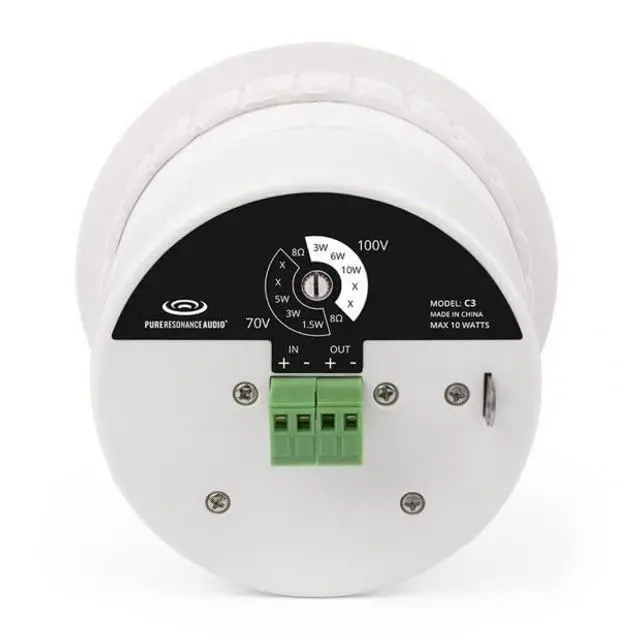 Inside the DesignThe Pure Resonance Audio C3 3" pendant speaker kit features a stylish and intelligent design ideal for exposed structures or open plenum ceilings. The C3 pendant speaker system delivers superb sound masking, background music, and paging in offices, restaurants, retail stores, resort and hospitality venues, or any other open-architecture high ceiling environments, and other spaces where hanging pendant speakers are required. With 8 Ohm and commercial 70 Volt audio taps and integrated single point mount, the C3 speaker is designed to provide excellent sound quality for a wide variety of business music sound system applications such as background music, paging, and sound masking.