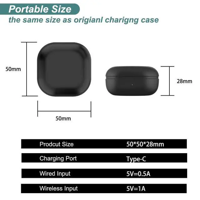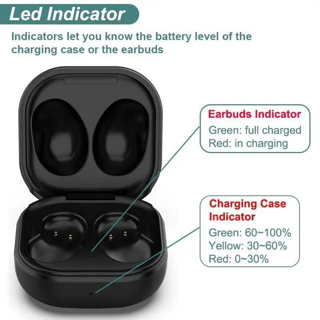 Note: 1. Charging case compatible with Samsung Galaxy Buds Live only. 2. Not compatible with Samsung Galaxy Buds / Galaxy Buds+ / Galaxy Buds Pro / Galaxy Buds 2 / Galaxy Buds 2 Pro. 3. The charging case not support wireless charging.