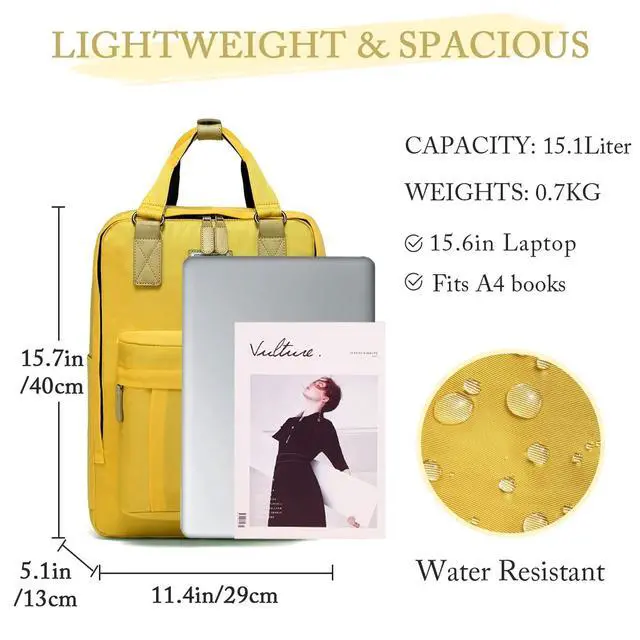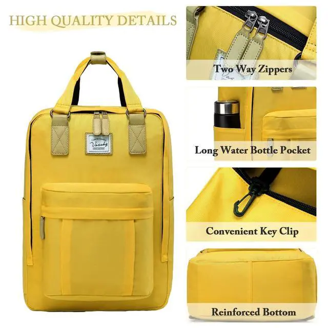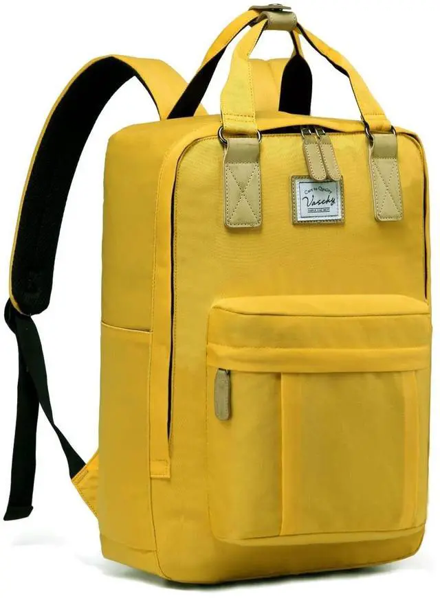 VINTAGE DESIGN: The Vaschy laptop backpack is made of high quality water resistant fabric, which is soft and durable. The vintage school backpack features a rectangle and streamlined design with adjustable shoulder straps for a better overall fit. The two top handles for hand toting the backpack makes it more convenient and comfortable to carry. ^^ EASY TO ORGANIZEThe casual backpack features a wide 180-degree opening for easy storage of everyday bulky items. The daily backpack can easily accommodates laptops from 13" to 15.6". Thickened padded laptop sleeve of the main compartment provides better protection for your laptops on commute.