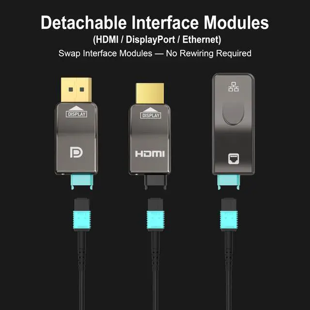 Core Fiber Cable for RUIPRO Detachable Interface System: This MPO female to female full fiber optic cable is designed for RUIPRO detachable HDMI, DisplayPort, and Ethernet interface modulesone cable supporting multiple interfaces and future upgrades.