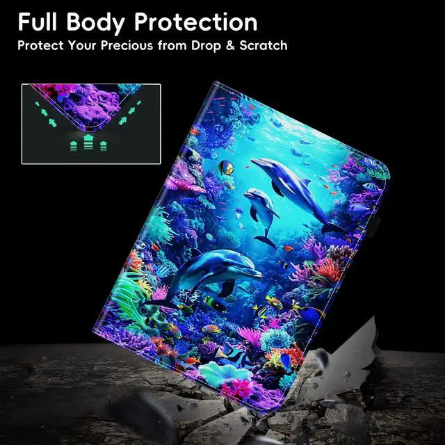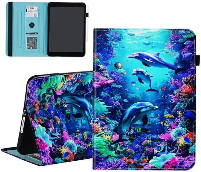 smauncucn Case for iPad 10th Generation 10.9 inch 2022,for iPad (A16) 11th Generation 11 Inch 2025,Wallet PU Leather Folio Cover Multi-Angle Stand with Auto Wake/Sleep,Dolphin Sea World Underwater