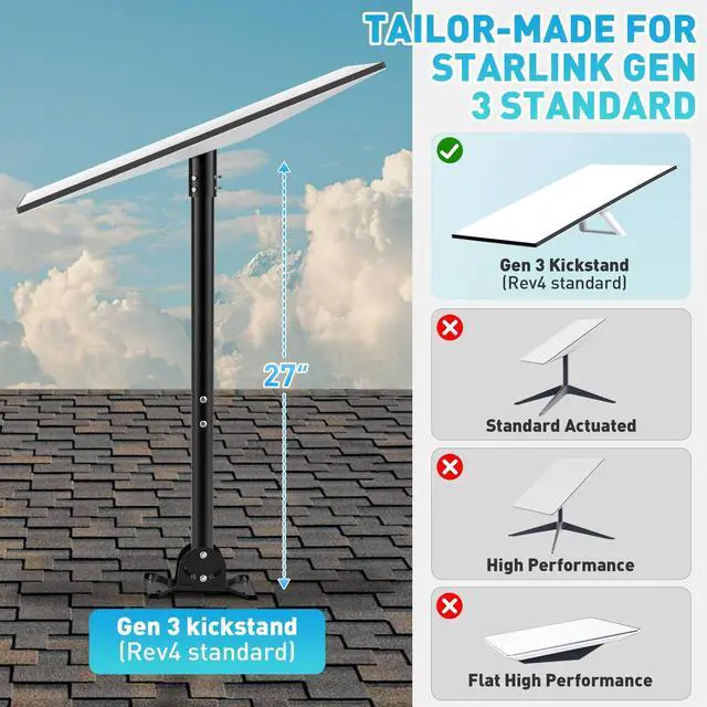 Extension Tube: Unlike other normal mount, our Starlink Gen3 mount comes with extra longer extension pole, which is 27 inches. Never worry about the long eaves or roofs.
