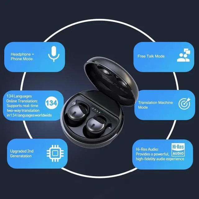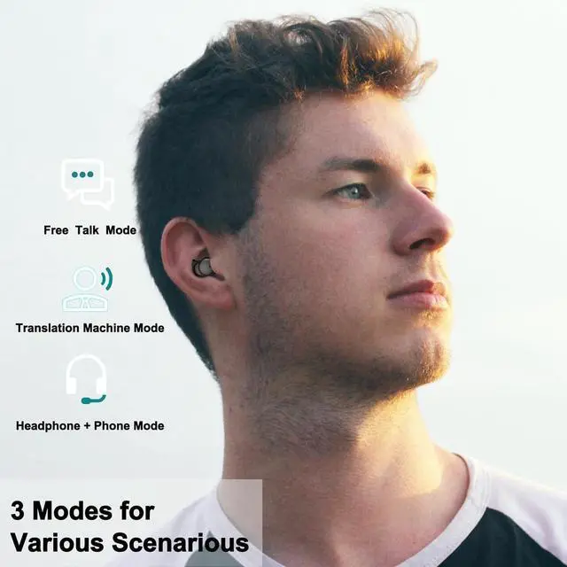 Language Translation Earbuds: Wireless high-precision real-time AI translation earbuds, support real-time two-way translation in 144 languages, able to meet global communication needs. Connect via Bluetooth, noise reduction mode, high-definition sound quality