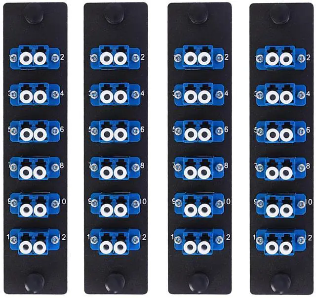 LGX Footprint Compatible Fiber Patch Panel Loaded with Singlemode 6 Duplex LC Adapters, Plate is designed with a Robust Steel Design. Make the installation and maintenance of the fiber optic cables more efficient. It's a long term, cost effective solution to securely transmit data requiring high transfer rates. Multifunctional CompatibilityFiber Optic LC F/F Adapter Keystone Jack Complies with SingleMode, Multimode, 1.25G /10GB, OS1/OS2/OM1/OM3, Adapt to various optical fiber cables, blue is just a marker. Low Insertion Loss & Low AttenuationAssembled with duplex, small form factor, 1.25 mm ceramic ferrule, LC connectors designed for compact, high cable density environments.