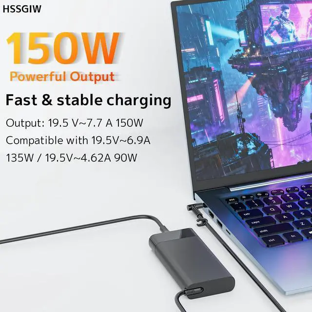 What You Will Get: 1 x 19.5V 7.7A 150W Laptop Charger, 1 x US AC Power Cord. Designed to be compact and portable, innovative stacked architecture, and an upgraded circuit layout, weve made it smallerwithout compromising power. Ideal for use at home, in the office, or on the go. Quickly recharge your laptop and stay productive wherever you are