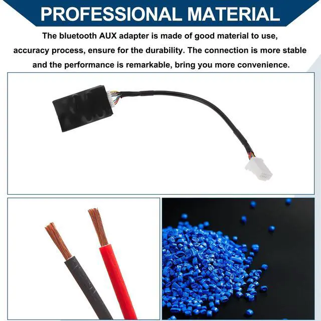 Made of: The bluetooth AUX adapter is made of good material to use, accuracy process, ensure for the durability. The connection is more stable and the performance is remarkable, bring you more convenience.