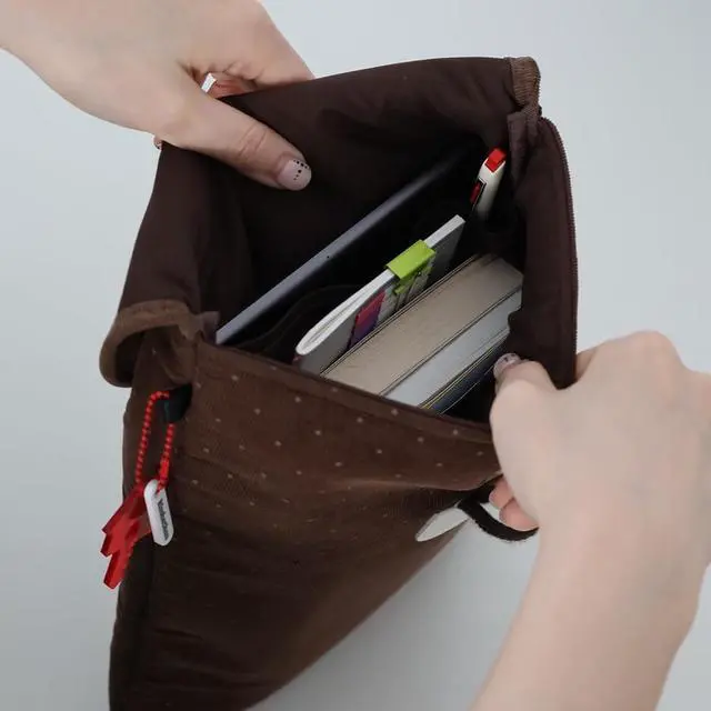 [Soft Corduroy with Gentle Dots] Made from finely woven corduroy with a subtle dotted pattern, offering a warm, soft texture that feels calm and comforting in your hands ^^ [Cozy Toggle Button Closure] Finished with a charming toggle button that opens and closes easily while adding a cozy, vintage-inspired accent to your daily carry ^^ [Cushioned Interior with Divider Pocket] Light padding and a smooth inner lining help keep tablets, laptops, or books neatly stored, with a divider pocket for small essentials ^^ [Thoughtful Everyday Details] Includes a side loop for attaching keyrings or charms, plus a signature Kimhachan woven label for a quiet brand touch ^^ [Made in Korea with Care] Designed and produced in Korea by skilled artisans, focusing on clean stitching, durable construction, and long-lasting quality