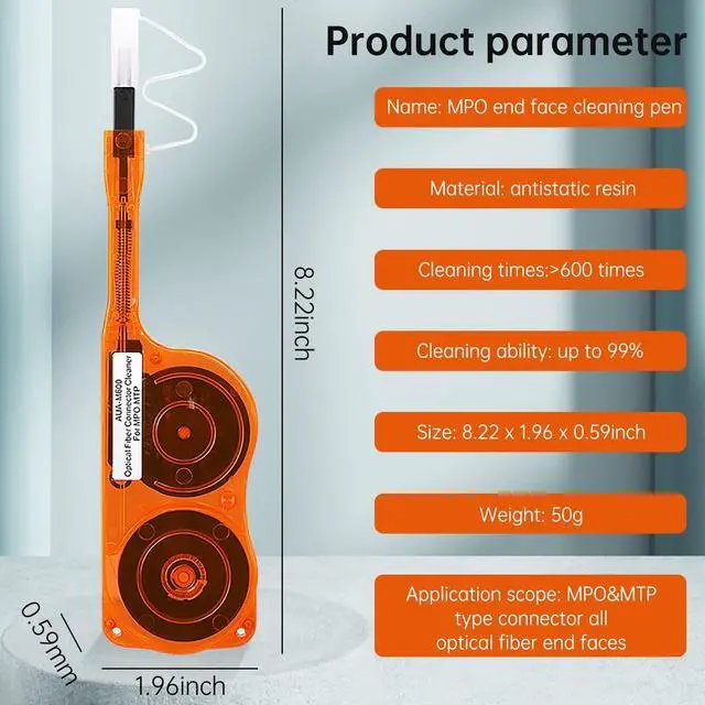 The package includes 2PC optic fiber connector cleaner for MPO/MTP with specification.