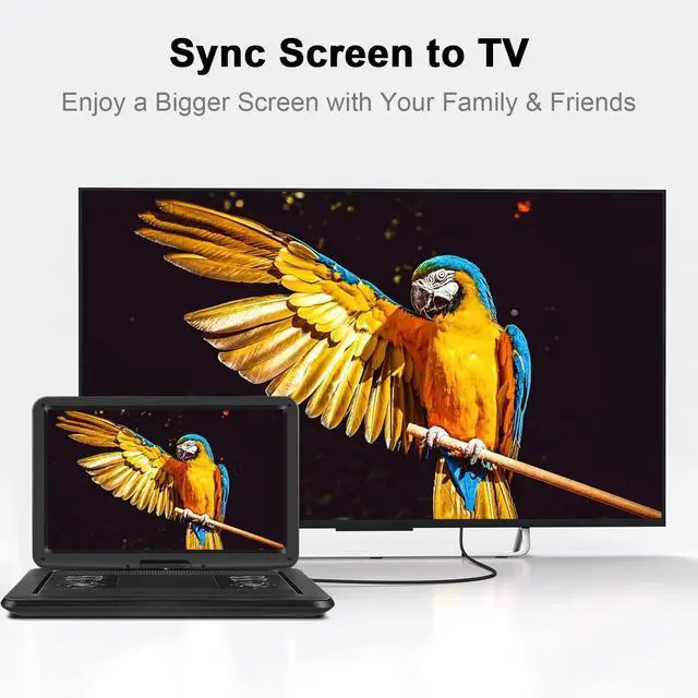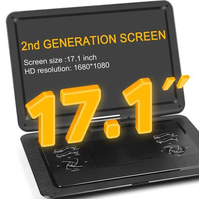 Extra-Large HD Swivel ScreenThis portable DVD player with a large 17.1-inch HD screen (1680x1080P) offers a crystal-clear, expansive view. With 270 rotation and 180 flip, you can easily adjust to your ideal angle, reducing eye strain and ensuring a comfortable viewing experience during long movie sessions or when sharing with friends.