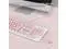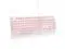 Quiet & Comfortable TypingLow-noise membrane switches stop disturbing "click" soundsNo more disrupting others! Durable crater structure supports 50 million keystrokes, making it a reliable wired quiet pink white keyboard for long hours. Ideal for office workers, students and shared spaces. ^^ Single-Color LED BacklitShine-through keycaps (transparent characters) boost soft illuminationNo more straining eyes in dim light or fumbling for keys! Even in dim environments, the characters remain clear and bright. Easily toggle backlight off via Fn+Scrlk and adjust brightness with Fn+PgUp/PgDn. Ideal for night typing, late work or dark spaces.