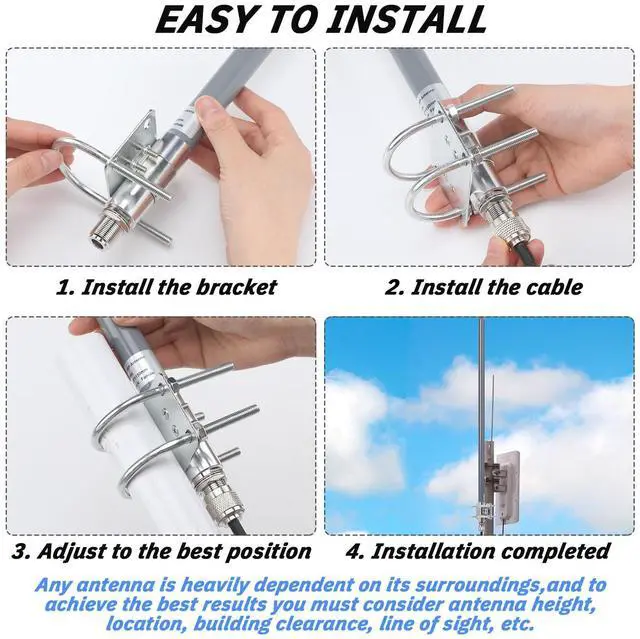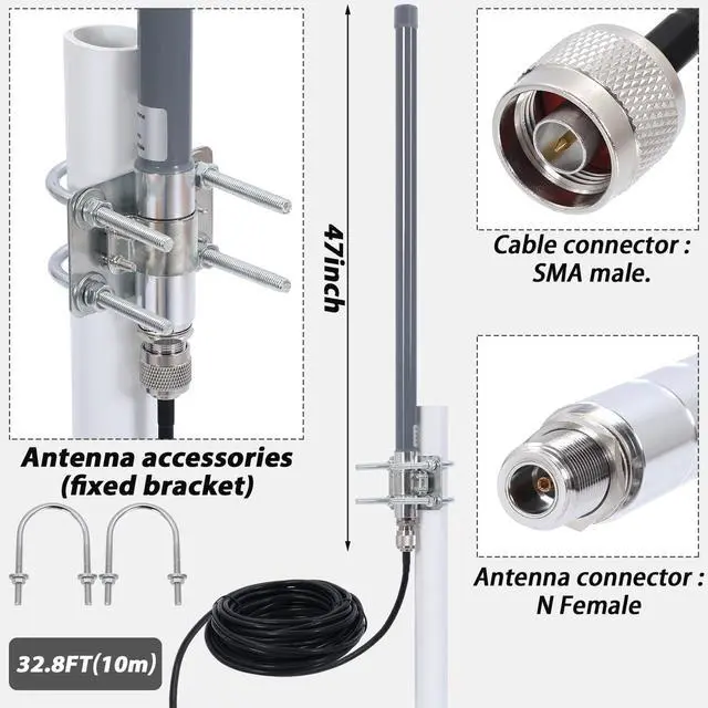 Features: Understanding that antenna performance heavily relies on its surroundings, tips for strategic placement are provided to help users achieve the possible reception by considering factors such as height, location, and line of sight. Including the antenna, a 10 meter SMA RG58 cable, and a mounting bracket.