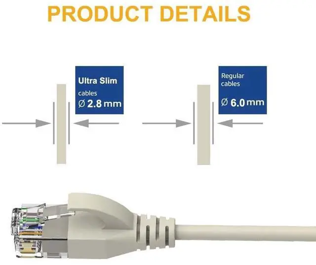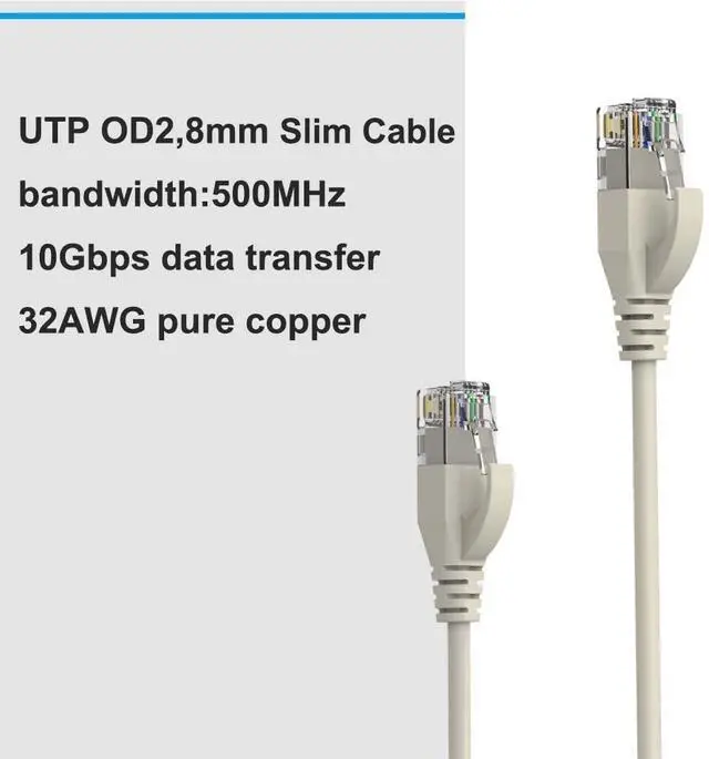 • The connectors are corrosion resistant and durable for secure connections. Copper Ethernet cables with an outer diameter of only 2.8mm, flexible and foldable, suitable for all kinds of scenes and harsh environments, and available in a wide range of sizes and colors.