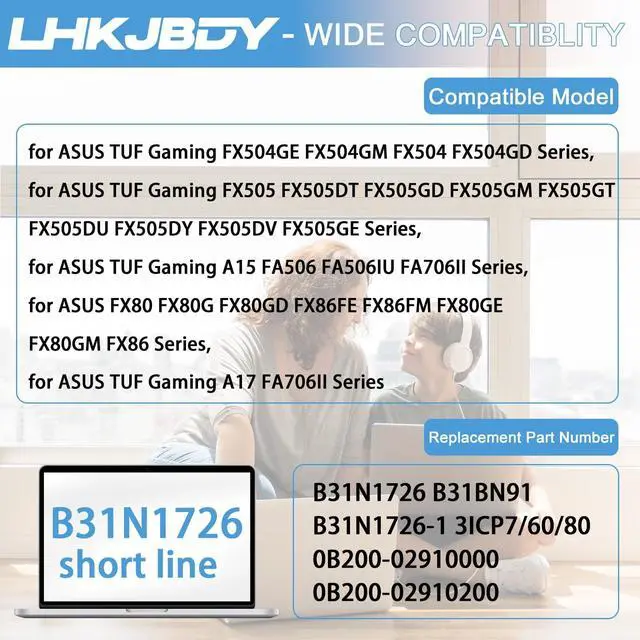 Compatible Laptop Models: B31N1726 battery for ASUS TUF Gaming FX504GE FX504GM FX504 FX504GD Series, B31N1726 battery for ASUS TUF Gaming FX505 FX505DT FX505GD FX505GM FX505GT FX505DU FX505DY FX505DV FX505GE Series, B31N1726 battery for ASUS TUF Gaming A15 FA506 FA506IU FA706II Series, B31N1726 battery for ASUS FX80 FX80G FX80GD FX86FE FX86FM FX80GE FX80GM FX86 Series, B31N1726 battery for ASUS TUF Gaming A17 FA706II Series ^^