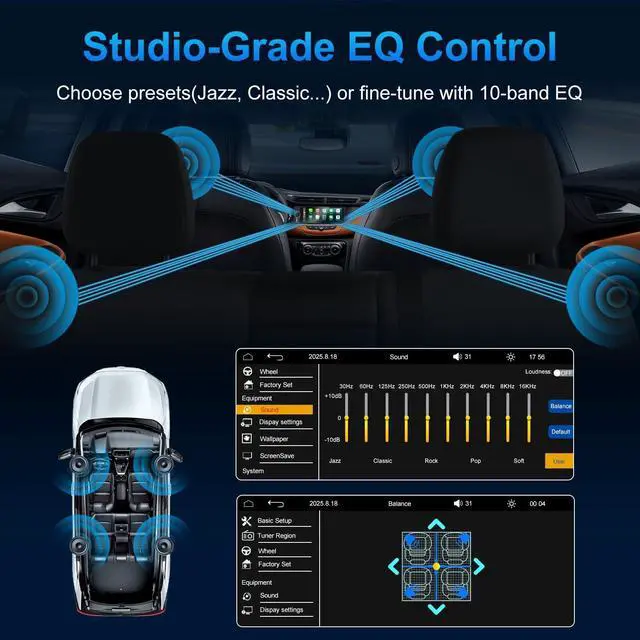 Park with absolute confidence using the provided night-vision backup camera, which features 12 powerful LEDs to illuminate the darkest environments and dynamic parking guidelines for precision maneuvering in rain or total darkness. Audiophiles will appreciate the worldwide FM tuner and professional 10-band equalizer, allowing you to customize sound settings directly on the screen or choose presets for studio-quality audio playback. Control everything effortlessly with the tactile Smart Knob for volume, mute, and screen lock, or by using your existing Steering Wheel Controls (SWC) to manage tracks and calls safely. Additionally, enjoy wired or wireless screen mirroring to project your favorite apps.