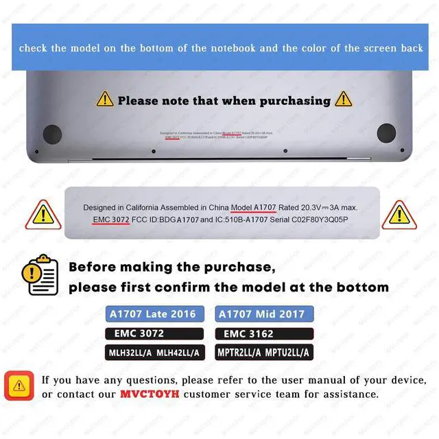 ^^ Part Numbers: A1707 Screen Late 2016 Mid 2017 EMC 3072 EMC 3162 661-08030 661-06375. ^^ Please note that when purchasing, check the model on the bottom of the notebook A1707 and the color of the screen back cover Silver. ^^