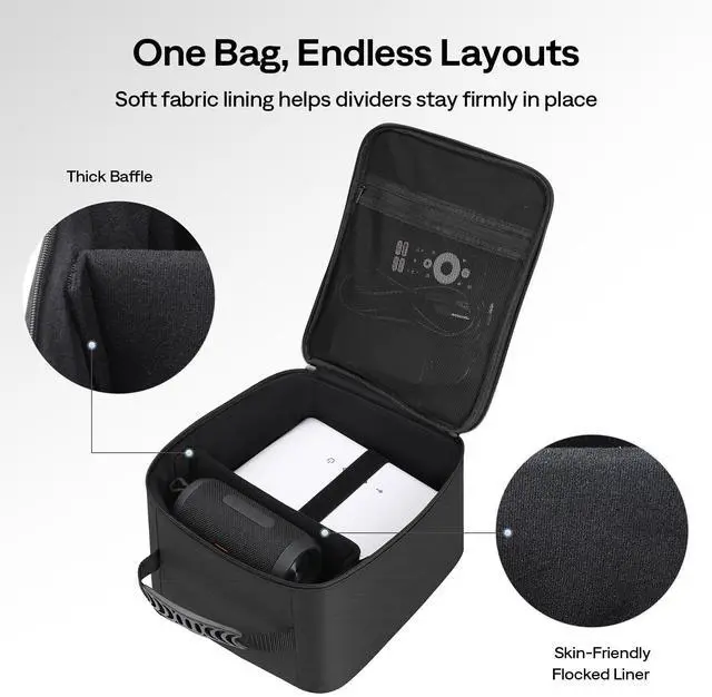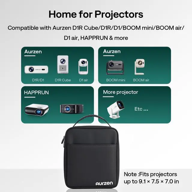 Wide Compatibility: Inner space 9.1 7.5 7.0 in fits many compact projectors. Compatible with Aurzen D1R Cube/D1R/D1/BOOM mini/BOOM air/D1 air and other similar-sized projectors. Please measure your projector first and allow extra room for dividers & cables.