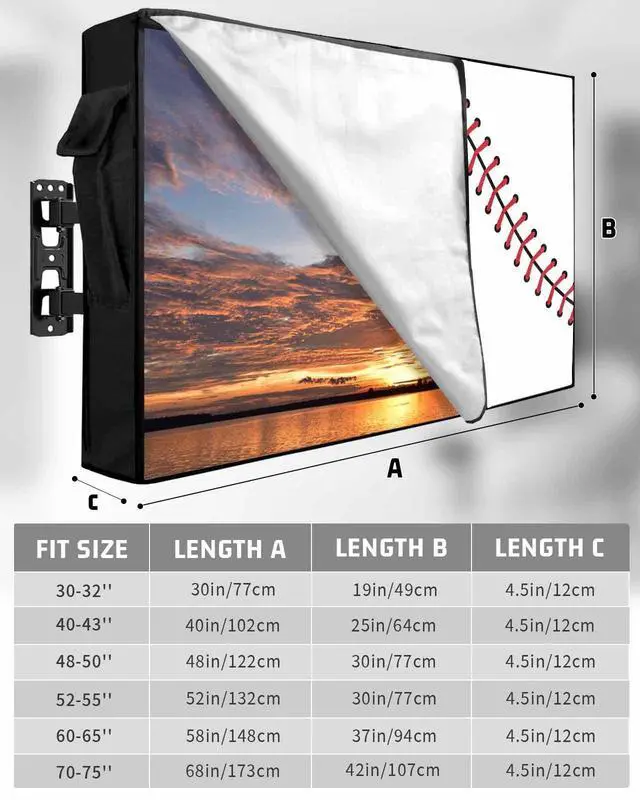 Universal Fit Elastic bottom straps secure the cover to any TV or mount for a snug fit. Stylish DesignsUpgrade your outdoor patio yard with this TV covers versatile aesthetics Whether you prefer modern minimalist, farmhouse, vintage retro, coastal blue, boho chic, or metallic luxeor festive themes like Christmas red/green, Halloween orange/black, Chinese New Year red, Thanksgiving neutrals, 4th of July stars and stripesthis cover blends seamlessly with any decor or celebrationVersatile Usage ScenariosPerfect for endless outdoor entertainment: backyard parties, patio movie nights, poolside BBQs, camping trips, garden brunches, balcony sports viewing, villa terraces, rooftop bars, courtyard gatherings, beach vacations, yacht lounging, tailgate markets, ideal for both home and commercial useGiftingPerfect as a housewarming, wedding, birthday, Mothers Day, Halloween, Thanksgiving, Christmas, thank-you, hostess, retirement, bridal shower, anniversary gift.