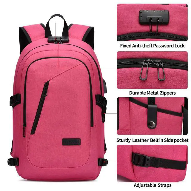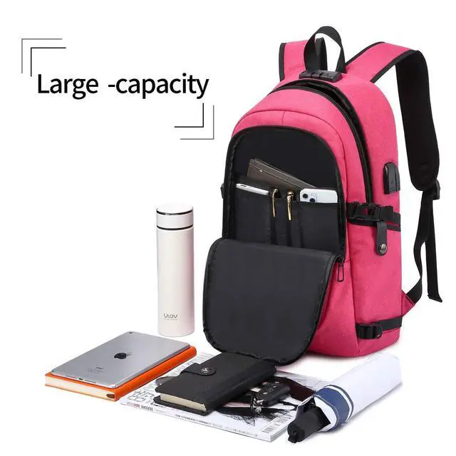ANTI-THEFT BACKPACK - This antitheft computer Backpack design with a password lock (Note: Please do not set the password before you read the instruction) and double metal zippers, protects wallet and other items inside from thief and offers a private space. ^^ MULTIPLE POCKETS /LARGE CAPACITY - Business laptop backpack has 3 MAIN pockets & 9 INNER small pockets & 2 SIDE pockets & 1 BACK pocket, provides a separated space for your Laptop, iPhone, iPad, keys, wallet, clothes, bottle and more. Easy find what you want. ^^ MULTIPURPOSE/SIZE - Size of