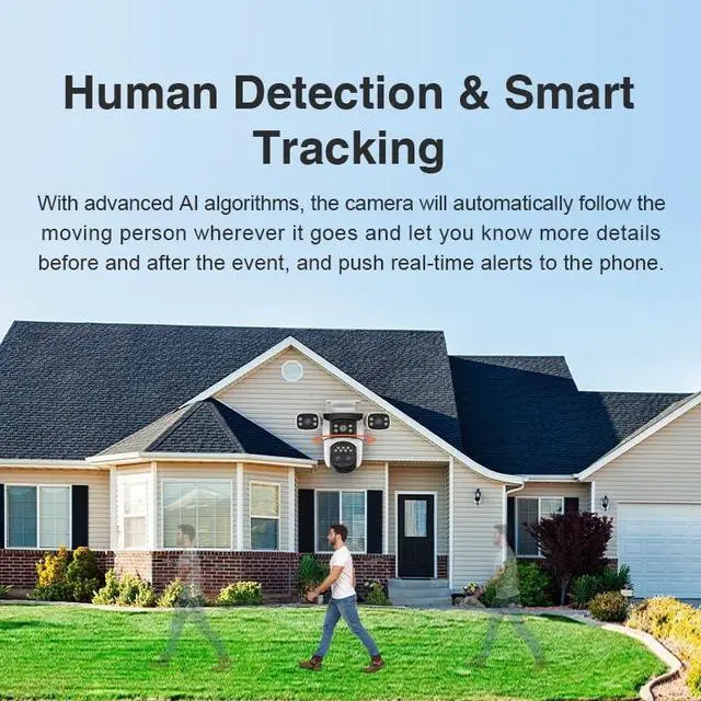 SMART TRACKING FEATURES: Equipped with human tracking technology and two-way audio communication, allowing you to monitor and interact with visitors or potential intruders in real-time from anywhere