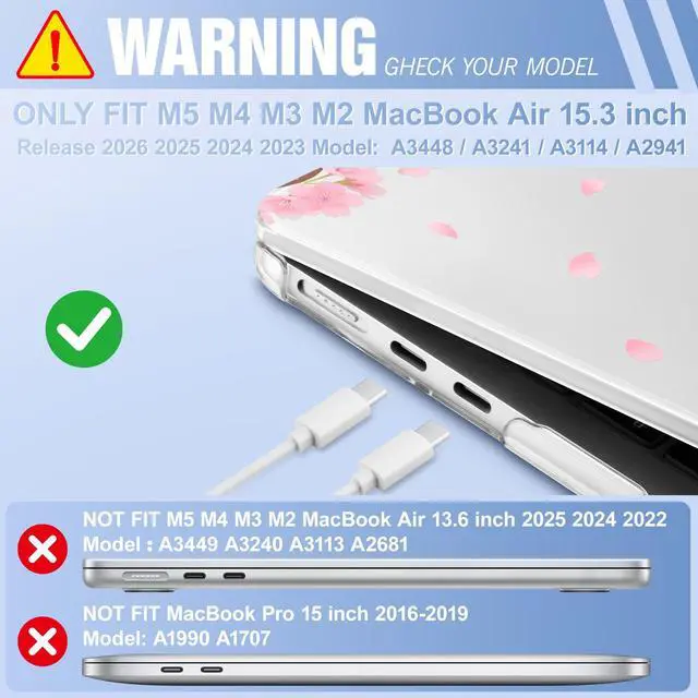 • Designed ONLY to be Compatible with 2023 2024 2025 2026 Release MacBook Air 15.3 inch Model: A2941 / A3114 / A3241 / A3448 Apple M2 M3 M4 M5 Chip with Liquid Retina display Fits Touch ID. Pls verify Model No. the underside of Laptop before buying.