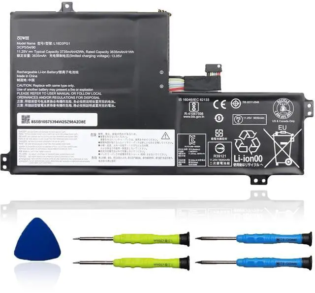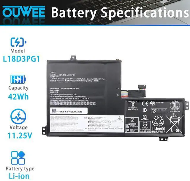 Condition: Brand new, from high quality materials, top circuit boards and smart chip. ^^ Fully compatible and high stabilityFit for Lenovo L18D3PG1 battery, for Lenovo 100E 500E Chromebook 1st Gen/100E 300E 500E Chromebook 2nd Gen/100E 300E 2nd Gen, Chromebook S340-14 Chromebook S340-14 Touch, Chromebook C340-11 Series Notebook. ^^ Pass Comprehensive Testing L18D3PG1 battery for the Laptop has been tested for best capacity and to ensure that all safety requirements are met - all before installation. ^^ Safe to UseAll OUWEE in products are Certified by UL / CE / FCC / RoHS for safety. Strict guidelines for compatibility, strict quality control standards to ensure the true capacity, stable current and low self-discharge and standards compliance for environment safety. We are confident in the performance of the replacement battery.